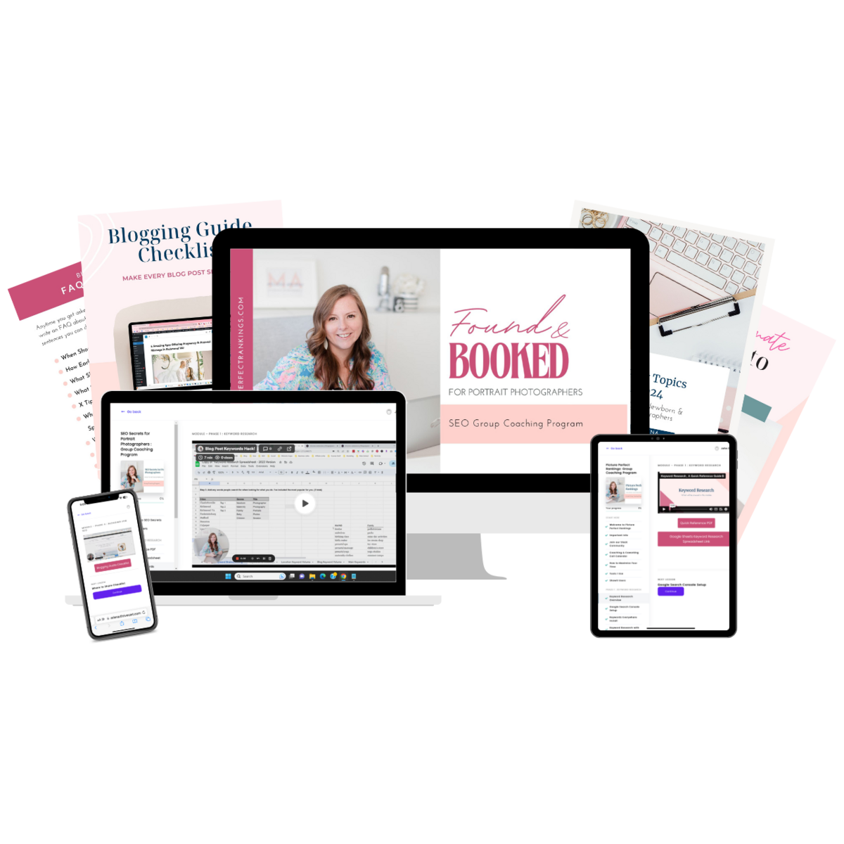 Found & Booked is a 4 month SEO group coaching program for portrait photographers that are ready to ditch the guesswork of SEO for good and finally get found on Google so they fill their calendar with dream clients.